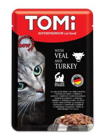 טומי מעדנית פאוצ' עגל והודו חתולים Tomi