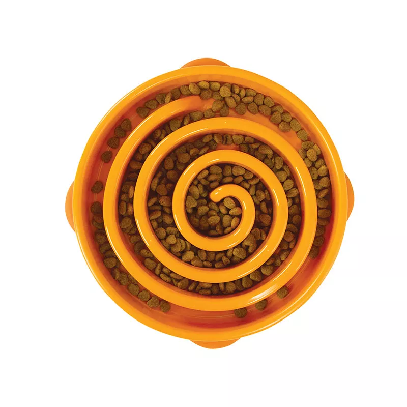 כלי לאכילה איטית בצורת ספירלה יכולה לעזור משמעותית לעיקול תקין ,לספיגת מזון טובה ומונעת יצירת גזים אצל הכלב.